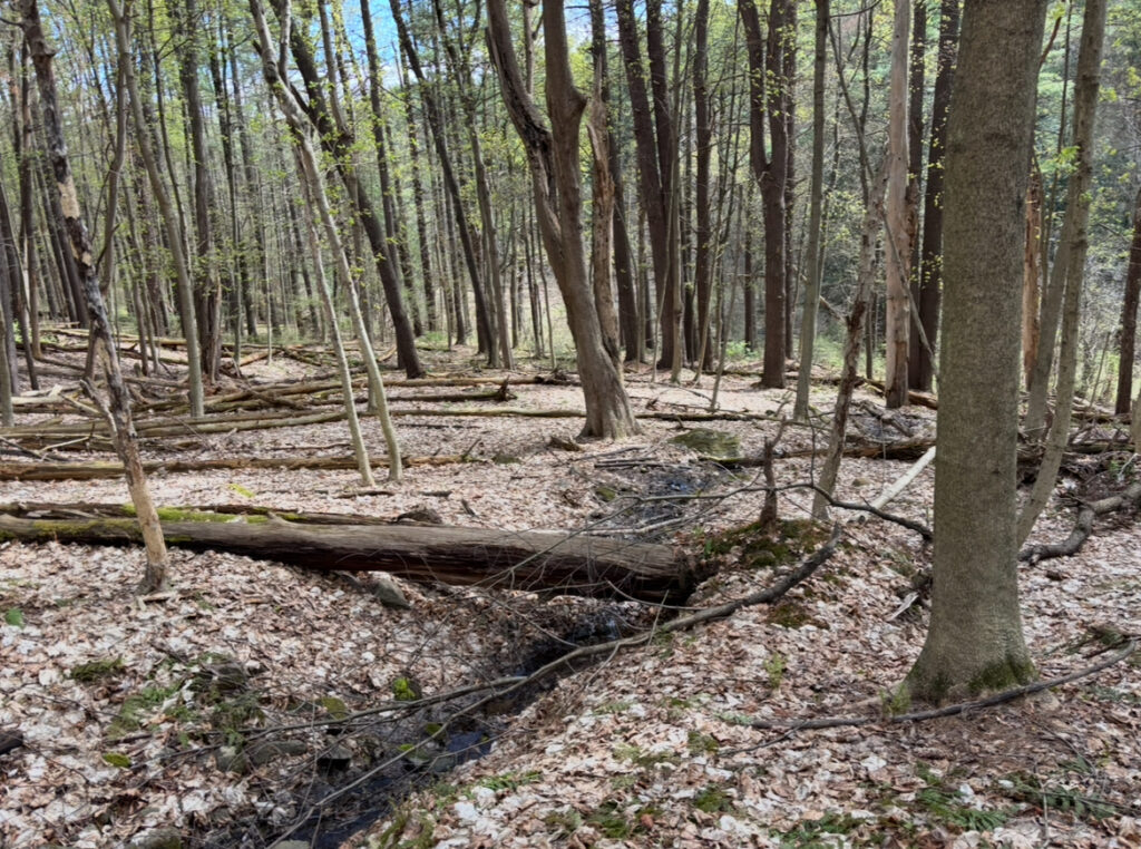 I have come to know my place well, the two twin-trees of different species that have grown into each-other, and the river that flows down the steep hill are the two that I think of first. There are countless downed logs that are strewn about, some have decayed, some have weathered the winter.