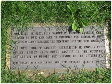 “Discovered in 1847, this naturally formed boulder was brought to UVM and came to epitomize the mission of the University … to transform the unversed into the well-rounded.