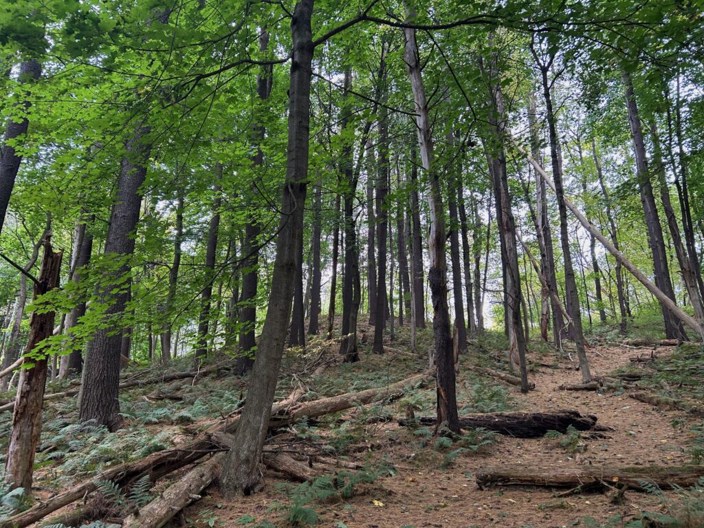 I chose this spot for diversity of plants in the area. It is a heavily wooded area in close proximity to developed areas and on the outer edge of Centennial Woods. There are many different types of trees in the canopy and thick vegetation on the ground.