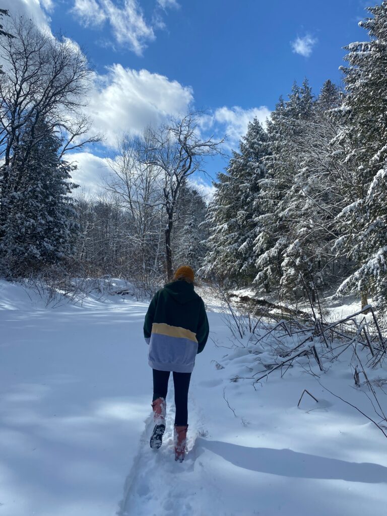 Nature and culture intertwine at Centennial Woods because the forest brings the UVM community and greater Burlington Community together. The layout of the woods encourages recreation through the seasons – hiking and walking trails run through the park, and when there is snow it is accessible for visitors to go snowshoeing or cross-country skiing. Because the woods are so close to UVM’s campus, it is easy for students to visit for classes or just to immerse themselves in the local Vermont nature.