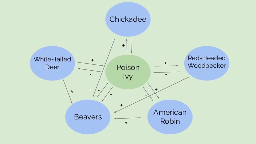 Below, I have inserted a Species Interaction Diagram pertaining to Centennial Woods and some of its most common species: