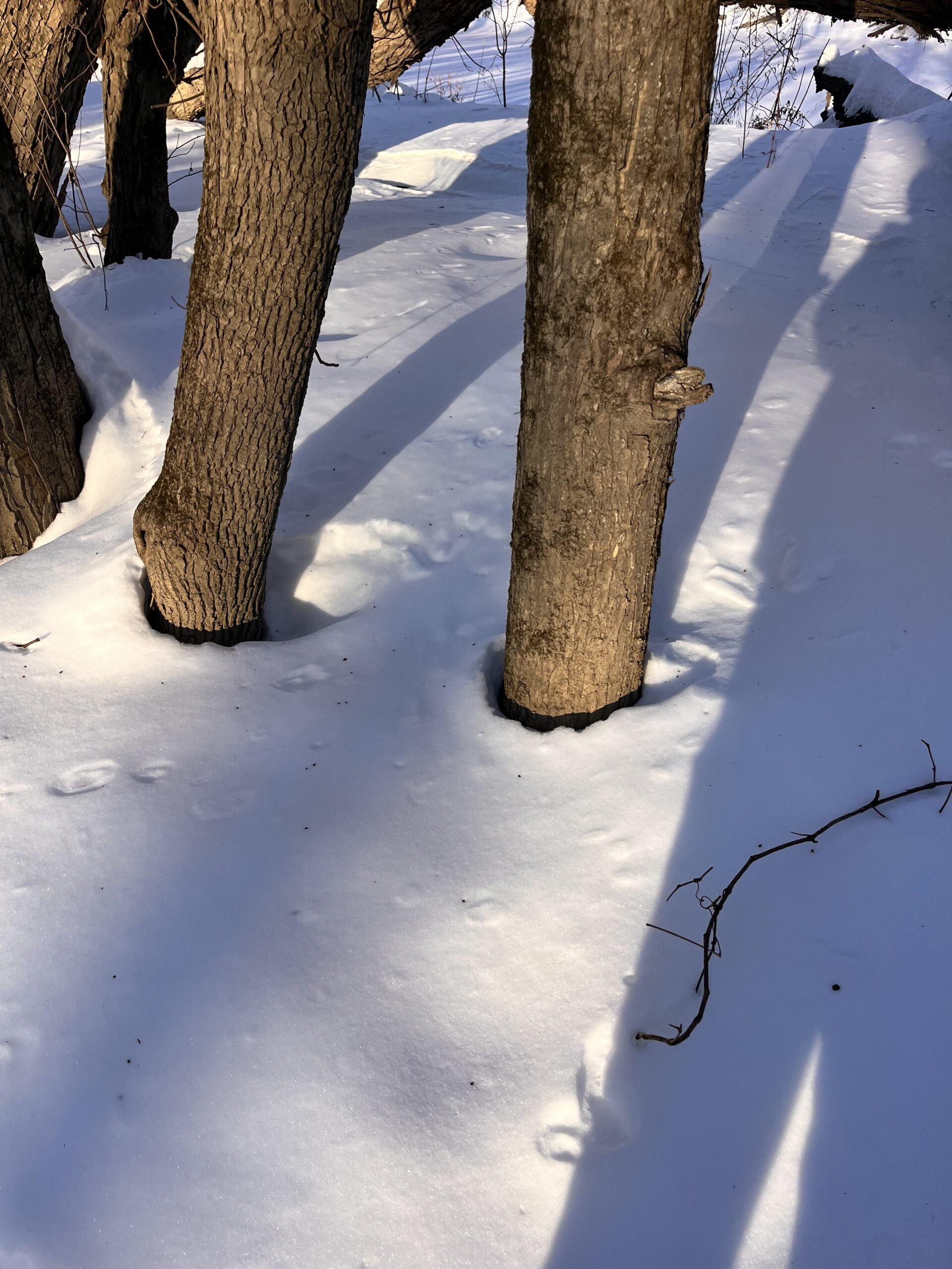 firstly i must mention not much has changed both my last visit and today were snowy, cold, and windy. the trees were dead and the ground was covered in snow. The shrubs and tall grasses have grown so thin i can walk through them something not possible a couple of months ago.