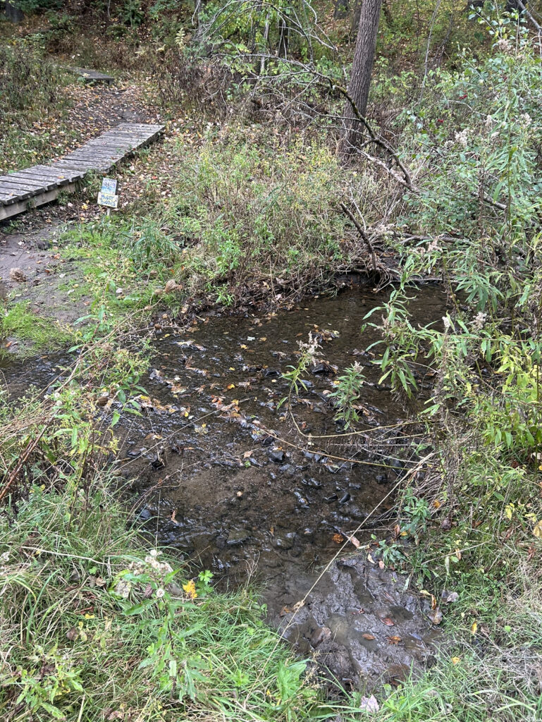 A major landmark of my spot was the flowing stream and bridge. This landmark is why I chose this spot in the first place, because I wanted to watch and witness changes in water. Another major landmark was the little island in the middle of the stream, and it was a nice thing to look at separately from everything else and identify separately. One minor landmark I would say is a tree to the left of my sit spot, because that is the tree I would photograph and watch change throughout all of my visits to my phenology spot. All three are pictured below!