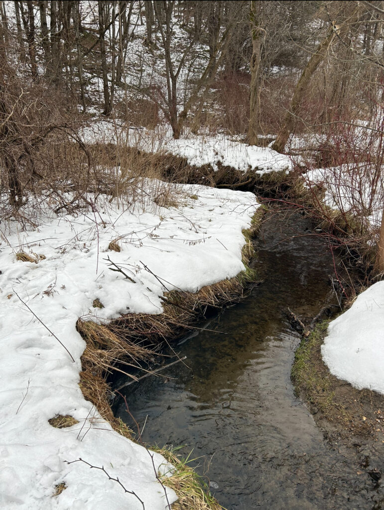 The biggest change I noticed every time I returned to my site was in water levels of the stream. I really enjoy water, and watching the stream change every time I would go to my site. The other way my site has changed is very traditional, but the plants changed in huge ways that had great tells of how the seasons were changing along with it. When I first went, the plants and trees still had leaves. As it moved into winter, the trees shed their leaves and became just sticks in the ground. Now, the trees and plants have buds showing signs of leaves returning soon. Watching these changes really made me appreciate my time here and getting to witness how my spot went to sleep in the winter and returned for the spring.