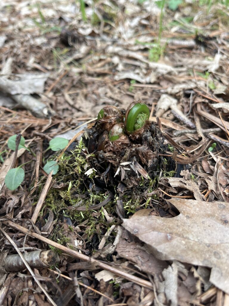 I’ve seen my site green with life, frozen over, and thawed out with the first signs of spring popping up all around me. My favorite has been recently – I just really enjoy spring and being outside after such a long winter. I love winter in New England, and my spot was beautiful when covered in ice and snow. However, it’s much more lovely with ferns popping up, frogs jumping around, and birds singing above.