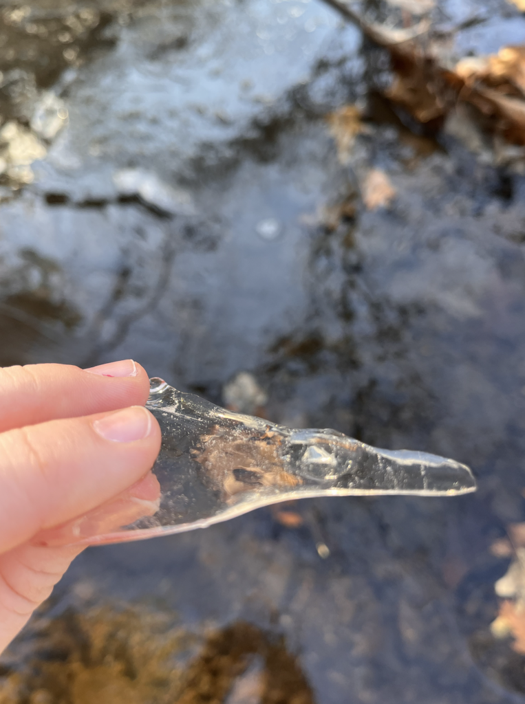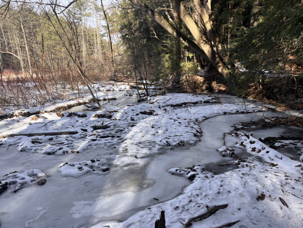 I’ve seen my site green with life, frozen over, and thawed out with the first signs of spring popping up all around me. My favorite has been recently – I just really enjoy spring and being outside after such a long winter. I love winter in New England, and my spot was beautiful when covered in ice and snow. However, it’s much more lovely with ferns popping up, frogs jumping around, and birds singing above.