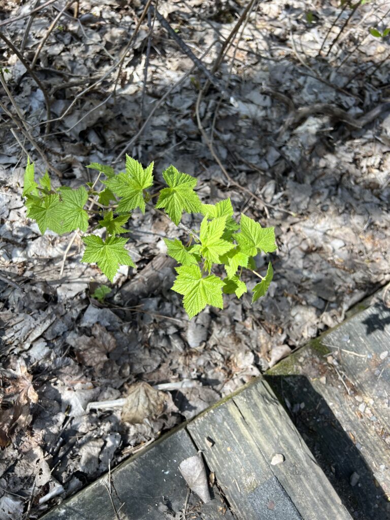 On the last trip to Salmon Hole, the same familiar objects were there. The large log where my sit spot is, the waterfall, and the tree down by the edge of the water. The site has changed a lot phenologically since I first went there. Things are green and beginning to bloom. There was more bird and insect activity.