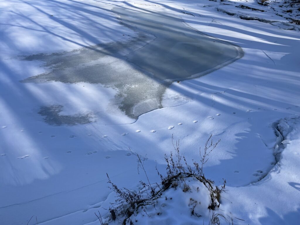 I’m not entirely sure what kind of animal these prints belong to. The tracks in the first two pictures are followed closely by human tracks and lead to the trail from which you can exit/enter. If I had to guess, I’d say these are also dog tracks. I wouldn’t be surprised if all of the above prints are dog prints as Salmon Hole is a pretty popular spot for activities like dog walking and fishing. In the autumn, I didn’t notice any signs of wildlife, perhaps due to Salmon Hole’s proximity to a busy road and downtown Winooski. In my opinion, these prints likely just belong to some of our domesticated four legged friends.