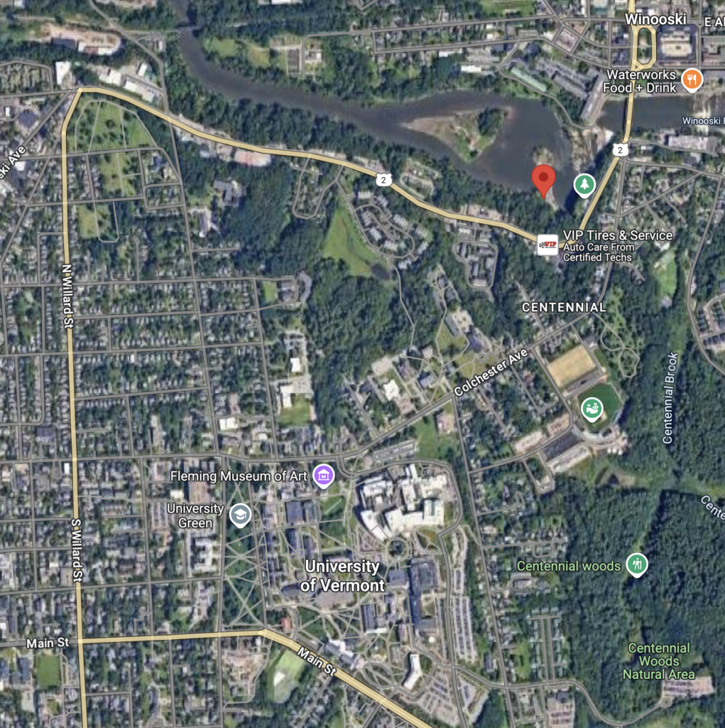 Salmon Hole Phenology Site is located just off Riverside Ave., in Burlington. To get there, you’ll want to start by navigating to the parking lot, which can be found by entering this location into your navigation system: 236 Riverside Ave., Burlington, VT 05401.