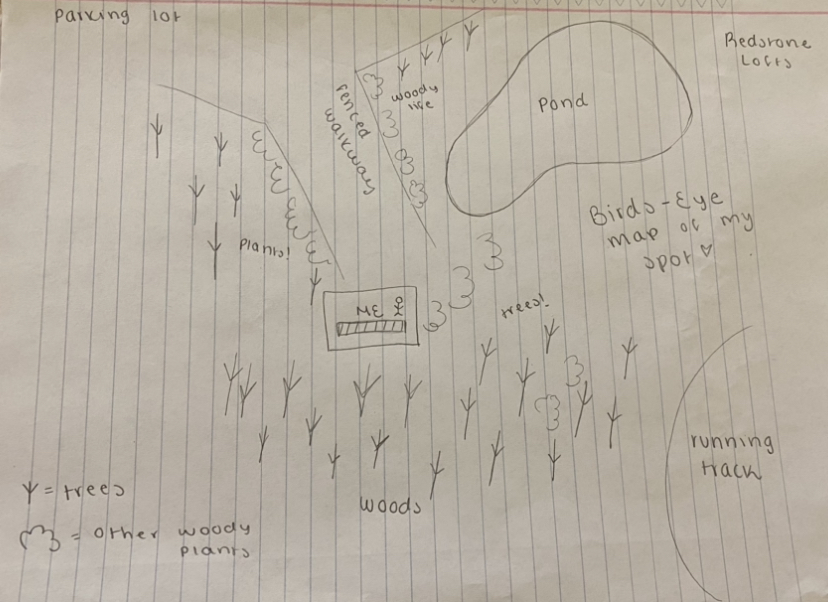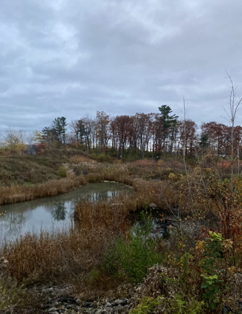 Welcome to my phenology spot! I chose to keep my location on campus, at the pond and woods right on Redstone Campus. Although this area is in between parking lots and buildings, it is interesting how beautiful and diverse it is. When walking through the woods, you are led to a running course and are able to view the mountains over the athletic fields. Although there are so many amazing spots in the greater Burlington area, I chose this spot because it is convenient and has already become a spot I visit when I need some fresh air, the beauty is an added bonus.