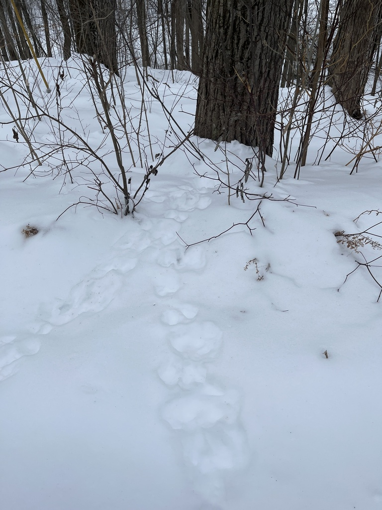 For this assignment, my friends and I went to the trails by Rockpoint, where we visited for a lab last semester. We parked by the school and walked down the trail and there was a decent amount of snow on the ground. There were a lot of dog tracks and pee, but we also saw/heard a few birds. I remember seeing black capped chickadees and a woodpecker. We also saw a few people Nordic skiing and walking their dogs.