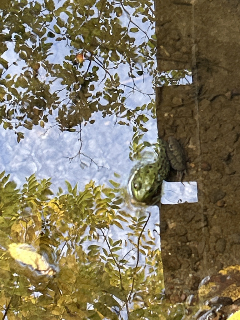 I noticed many different kinds of berries on the trees surrounding my area, some black from Honeysuckle and Buckthorn, and others red from the Chokeberry trees. I was also lucky enough to spot a large Green Frog in Centennial Brook before it hopped away!