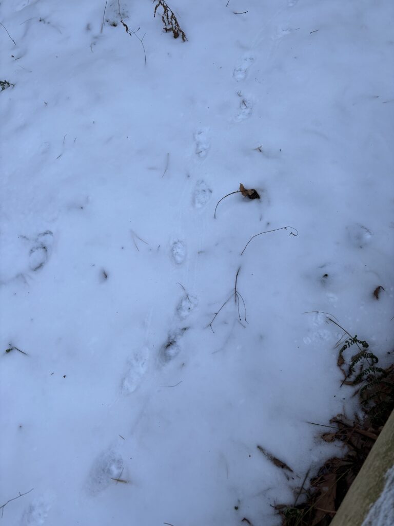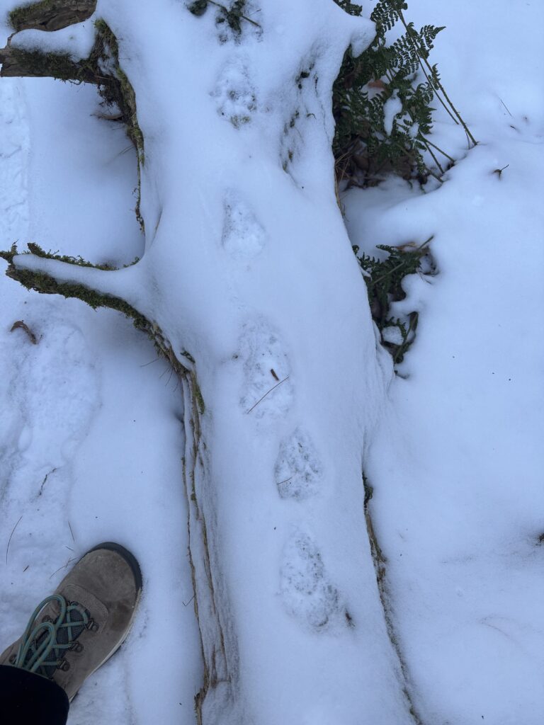 The first tracks I came upon were these cutie little Grey Squirrel (Im fairly sure about that) tracks on the log. Unfortunately we couldn’t follow these very far as they disappeared on the ground.