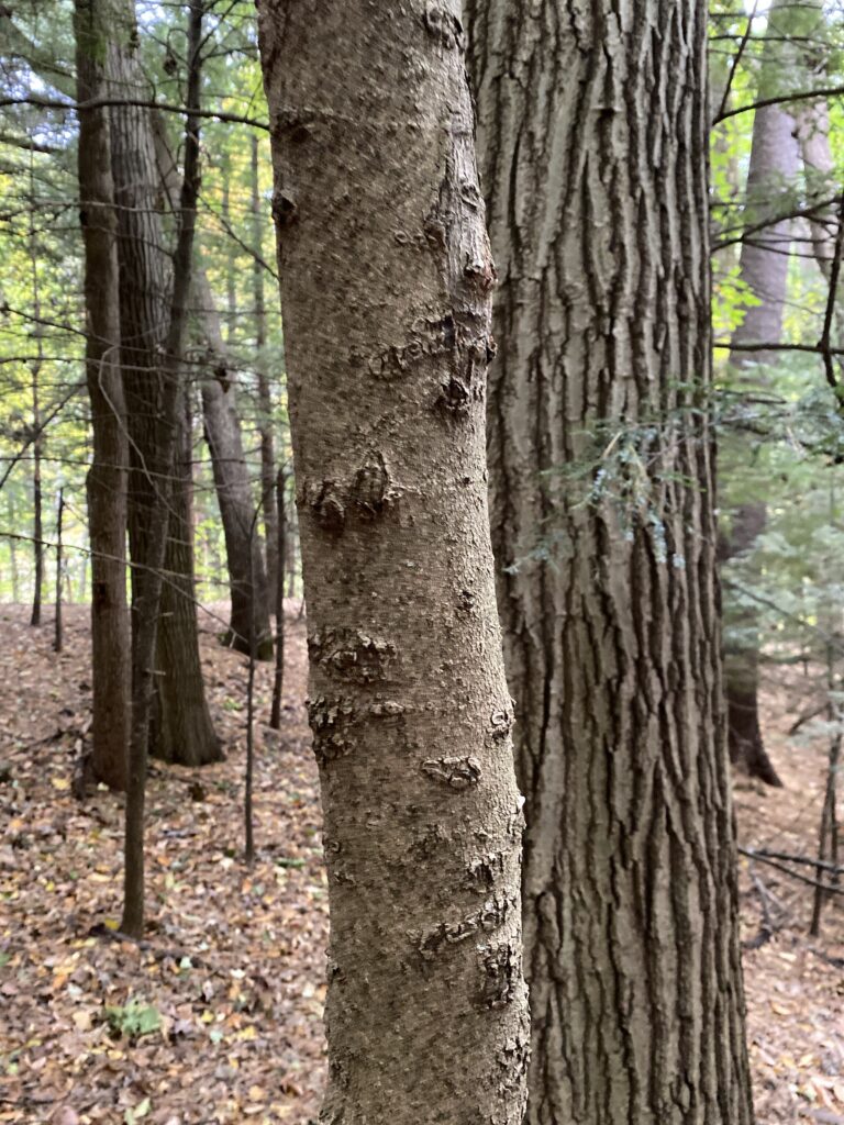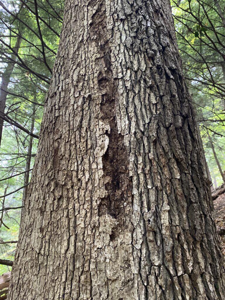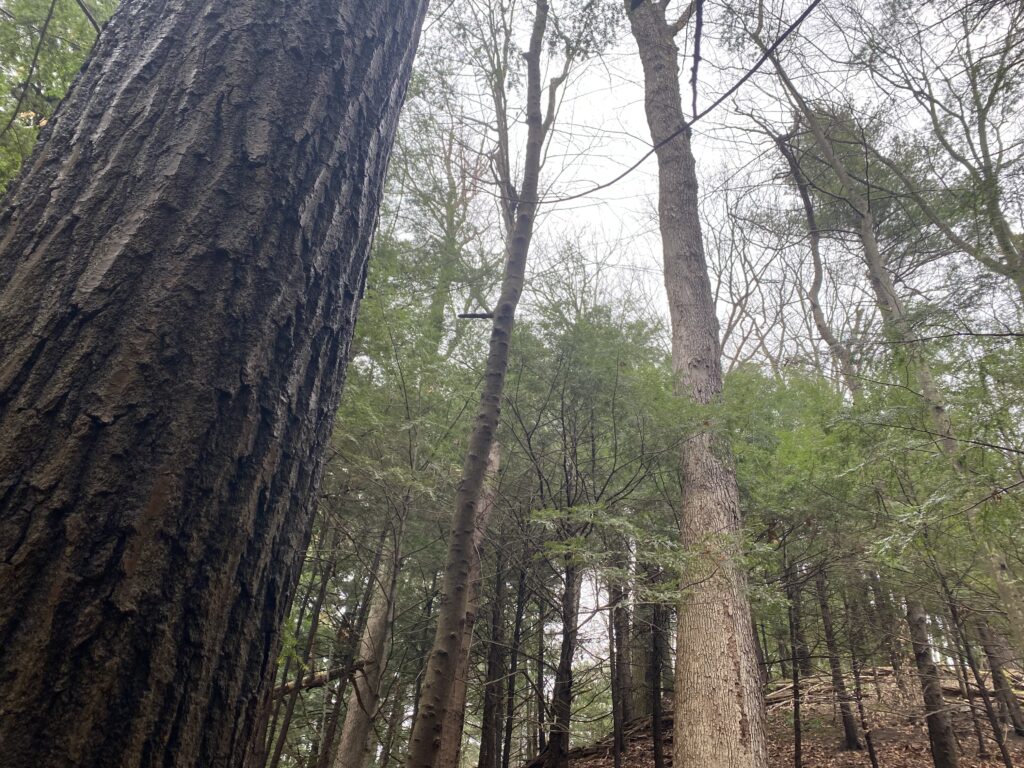 My spot is in Centennial Woods, centered around a tall white oak. This oak is across the brook and about half way up the hill in the more open section where the trail widens. It is vaguely across from the bunker.