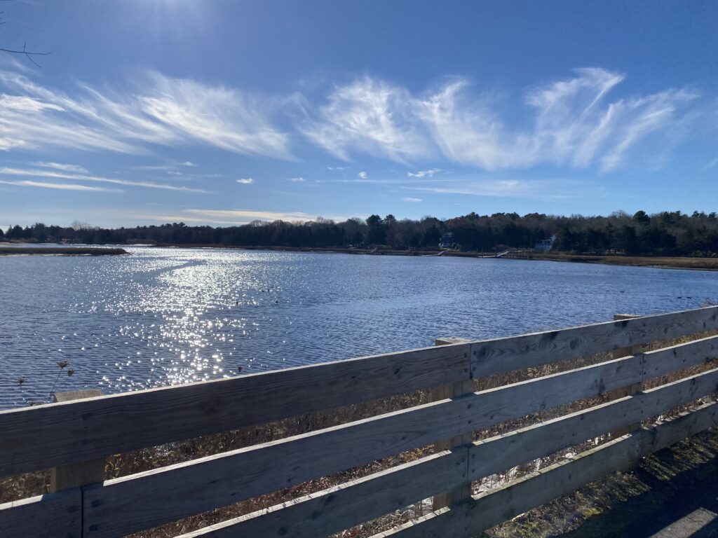 Going home for Thanksgiving, I was asked to find a new phenology spot. I decided to go on a walk with my dog and visit the beach, walking by my old preschool, Shining Tides, on the way. This spot sits on the beach, overlooking Mattapoisett Harbor, where a new boardwalk has been built, connecting the Mattapoisett Rail Trail to Mattapoisett town center.