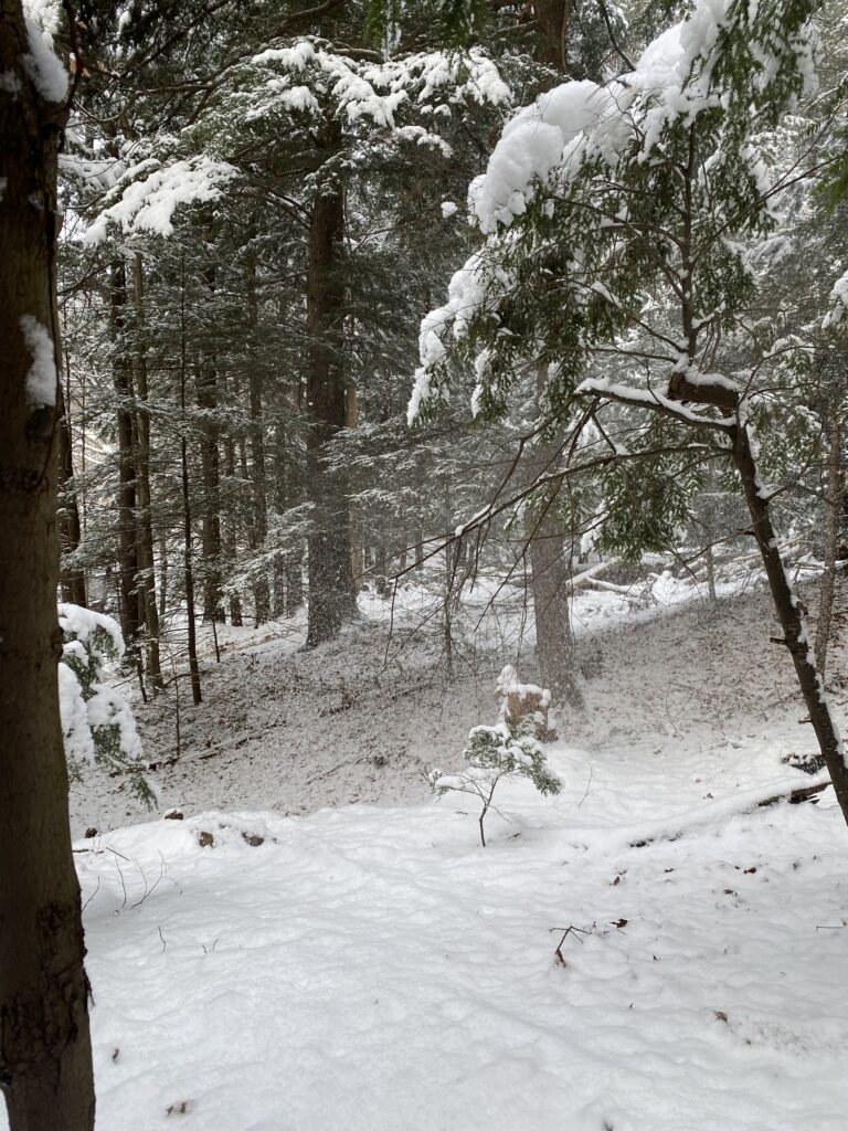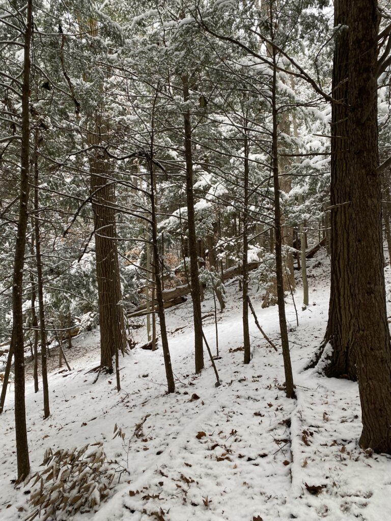 Snow has fallen in Centennial Woods! The first substantial snow of the season has coated the woods in a layer at least an inch thick.