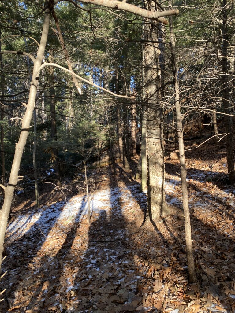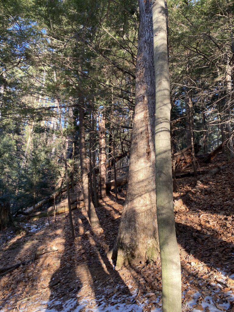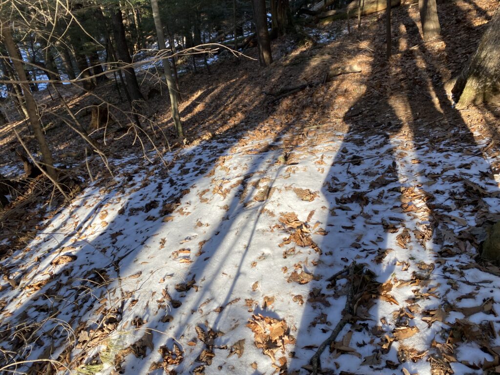 There is still some snow in the woods but not nearly as much as my last visit. The amount lessens as you walk further into the woods, but there are still some stubborn patches that dot the floor. There wasn’t enough snow to see any animal tracks or signs. Below are some images of my site.