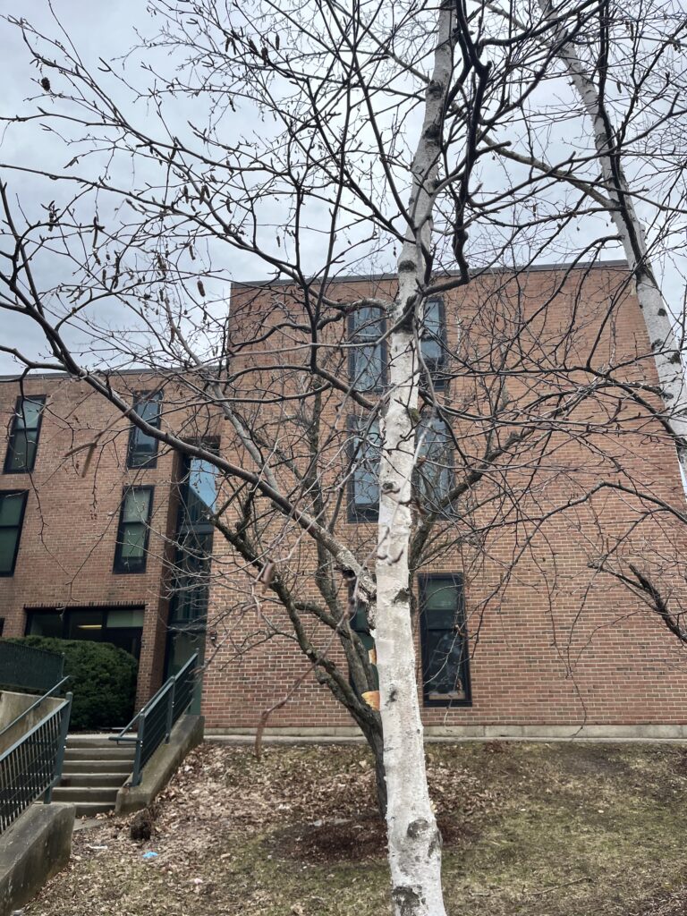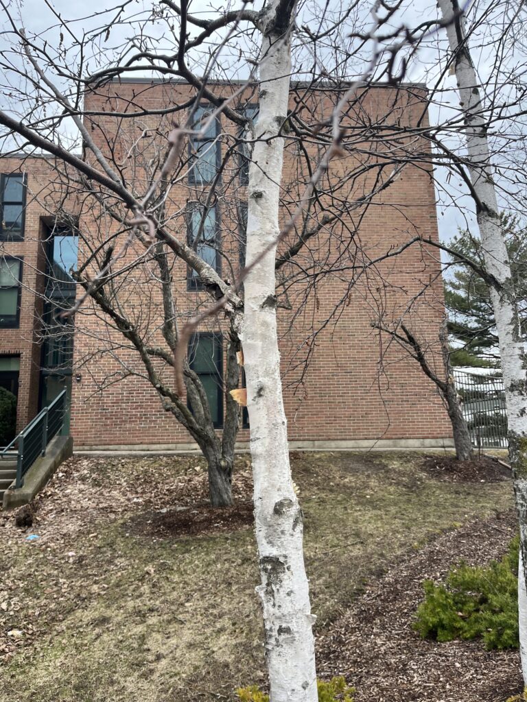 The birch tree is starting to look like its ready to start growing leaves. The buds are at their longest, about a 1/4 of an inch. Some of the buds toward the top of the tree even looked like leaves were breaking out. Overall, the leaves should be coming soon.
