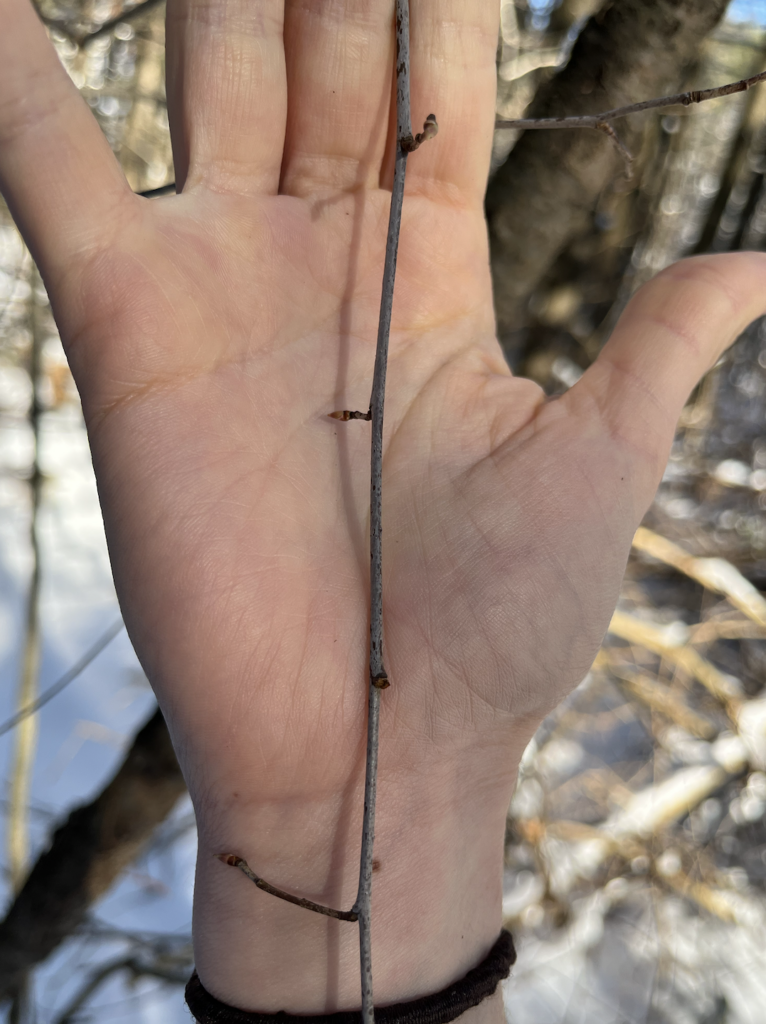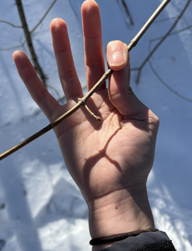 Most trees in the area are Red Pines that extended into the overstory and have not changed much in appearance aside from having more or less snow on their branches over the months. Scattered throughout are a few deciduous trees, many just starting to produce buds. I found what I think are the beginnings of Yellow Birch and Norway Maple buds.
