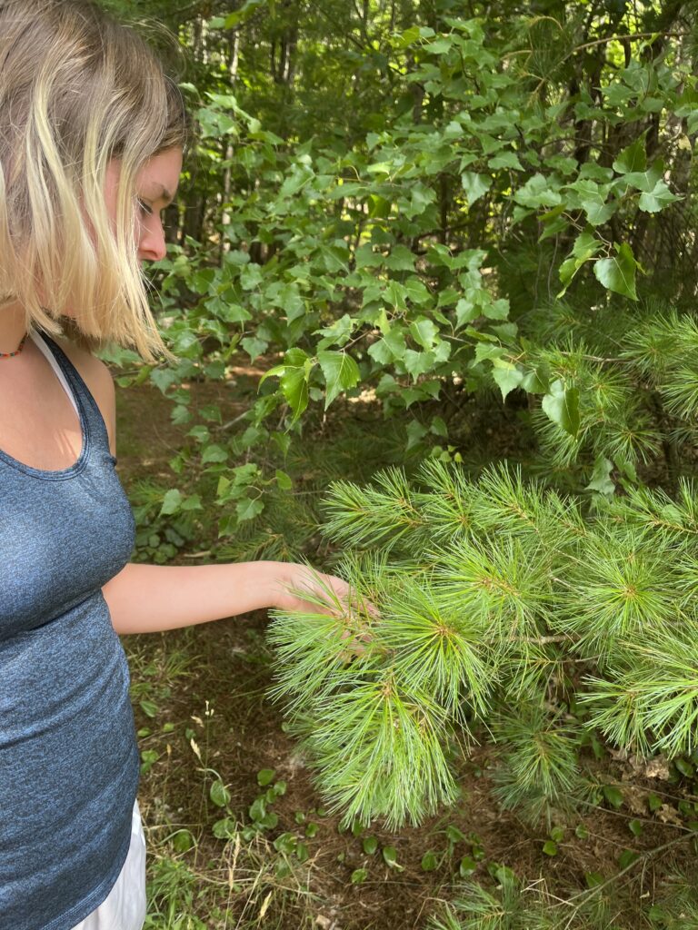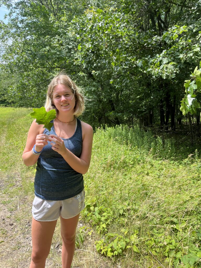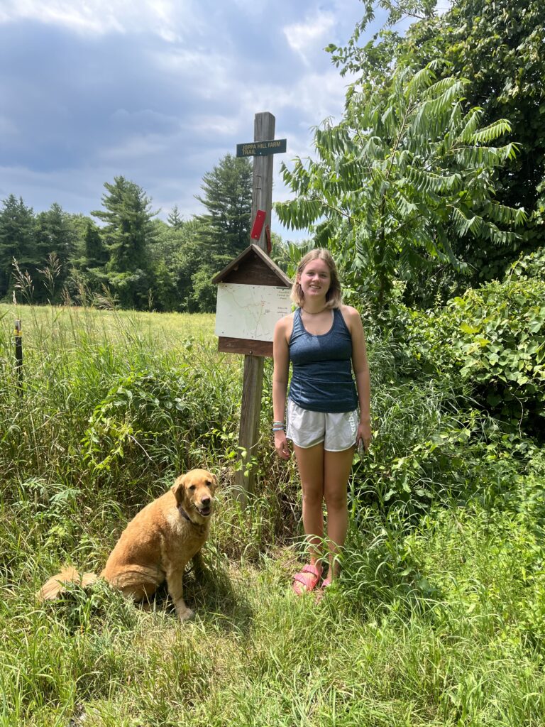 For my Mini Project, I wanted to share my site and all the knowledge I gained over the past few weeks with someone important to me. This week I took my little sister (Aly) and dog (Bailey) on the Joppa Hill Loop Trail. When we arrived I asked Aly to do exactly what I had been doing for the past 3 weeks. I told her to be curious about everything. While at my site, I was able to help Aly identify a few different plants. We found some wild blueberry shrubs, an area of Eastern White Pine saplings, and a beautiful Black Oak tree with some massive leaves.
