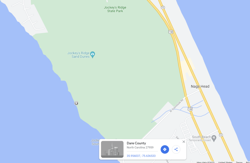 The beach at Jockey’s Ridge State Park could not be more different than Centennial Wood. While both are right on the edge of busy areas and surrounded by a neighborhood, Jockey’s Ridge has wide sand dunes and few trees. It also opens up to the Albemarle Sound instead of a small creek like Centennial Brook. Where Centennial Brook is a freshwater environment with little to no wildlife, the Albemarle Sound is a saltwater environment home to sharks, dolphins, many different species of fish, and occasionally manatees in the winter. Jockey’s Ridge is also home to many different bird species, similar to Centennial Woods, but there is not much wildlife as most of the wildlife lives in the woods surrounding the Sand Dunes. Finally, Jockey’s Ridge’s landscape is often changing based on different storms and how they shift the dunes.