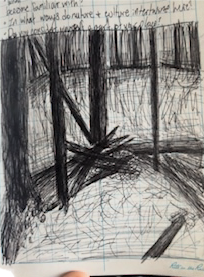 My site hasn’t changed much over time, but there was more foliage present and more water in the creek next to my spot now that it is spring. Other than that, the understory plants and surrounding forest structure were the same as when I first visited. Surrounding the site are many trees that I had become familiar with when navigating to the spot. Sometimes I would take different paths through Centennial to reach it, but I would always use a large fallen tree to let me know I was in the right place. The tree was old growth and probably about two feet in diameter, so it’s hard to miss. I would also follow the nearby stream and the sound of running water because it lies adjacent to my spot. This spot is a perfect example of where nature and culture intersect. Each time I go to the spot, I find some positive human remnants, indicating that other people were enjoying my spot too. Once I found a circle made of rocks, and this time I found two pieces of grass woven into a square. There is a common respect for nature when using it for recreation, emphasizing the culture of valuing nature here in Vermont.