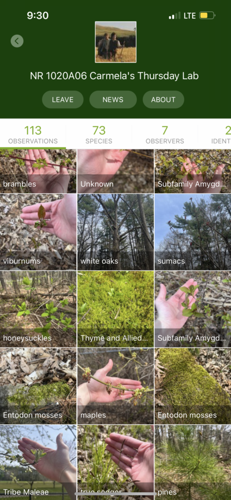 Outside of it’s phenology, the site hasn’t changed much this year. I think some of the dead trees I found during the first visit might have been cleared over winter break, but I may be wrong. The creek has waxed and waned over the course of the year, with the increases and decreases in water as the snow freezes and thaws, but it hasn’t changed much fundamentally.