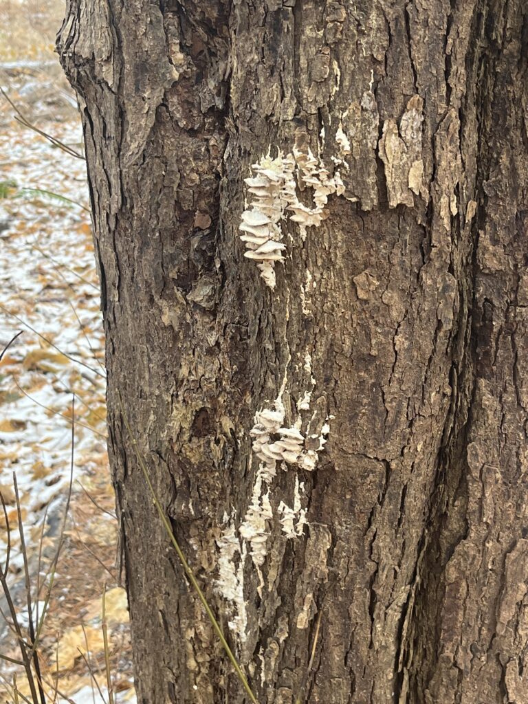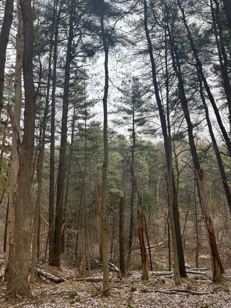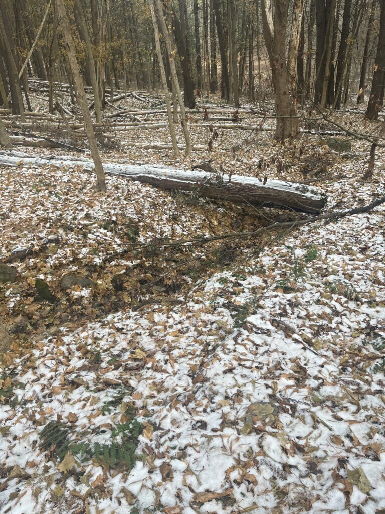 The only foliage left was the White Pines and a few Norway Maples with some leaves still hanging on (there were a LOT of Norway Maple leaves on the ground). The leaves still seemed pretty fresh, but I did notice that some of the dead logs around the site seemed more decomposed.