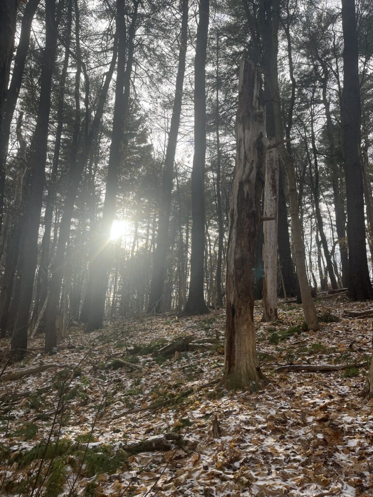 My favorite part of my phenology spot is definitely the walk down. I usually chose to get to the spot by walking through the back lot of the Centennial Apartments until I find the culvert that feeds the brook in my spot, which I then follow back to the trail. It’s a really peaceful walk, and I like being away from the trail and everyone else in the woods. It also lets me see parts of the woods that other people don’t really get to see and interact with, including a lot of wildlife that avoids the more frequented parts of the woods.
