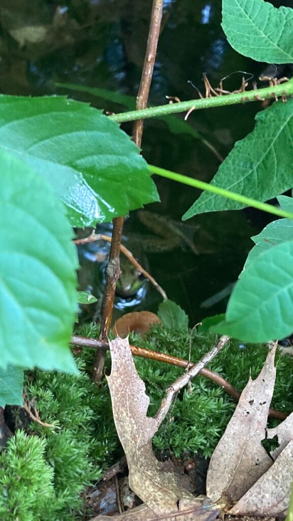 The species I identified which I was unfamiliar with was the green frog, or Lithobates clamitan. As I was walking along the stream, I observed many frogs. With this one, I was able to get close enough to have a good look at its features and take a photo for reference; I was very curious what species was hanging around the stream. Using Mass Audubon’s list of native frog species in Massachusetts, I was able to compare my photo to many different species and conclude that it was a green frog. Through my research, I learned that the green frog will eat pretty much anything they can swallow: they’re not picky!