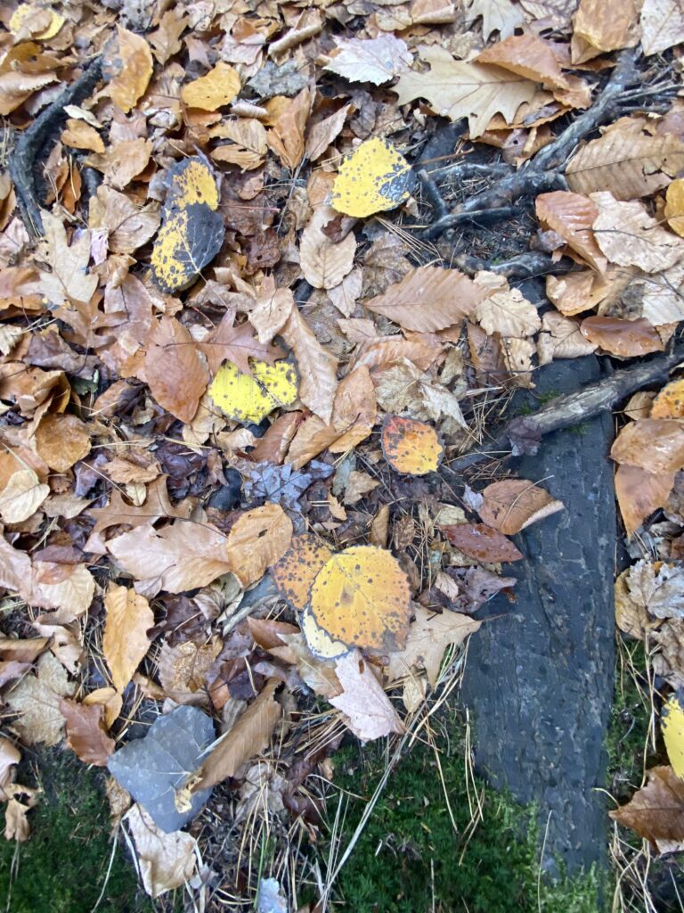 Patterned along the ground lay brilliant orange leaves mimicking the hue being cast through the trees from above. Large-tooth Aspen (Populus grandidentata) invested their colors into orange yellow and red hues. Yet something was wrong? On every leaf that I could see was large black speckles and spots. Some leaves had even turned completely black. I had never seen a black leaf before let alone the brilliant patterns created by the black spots. I knew that I had found something interesting.