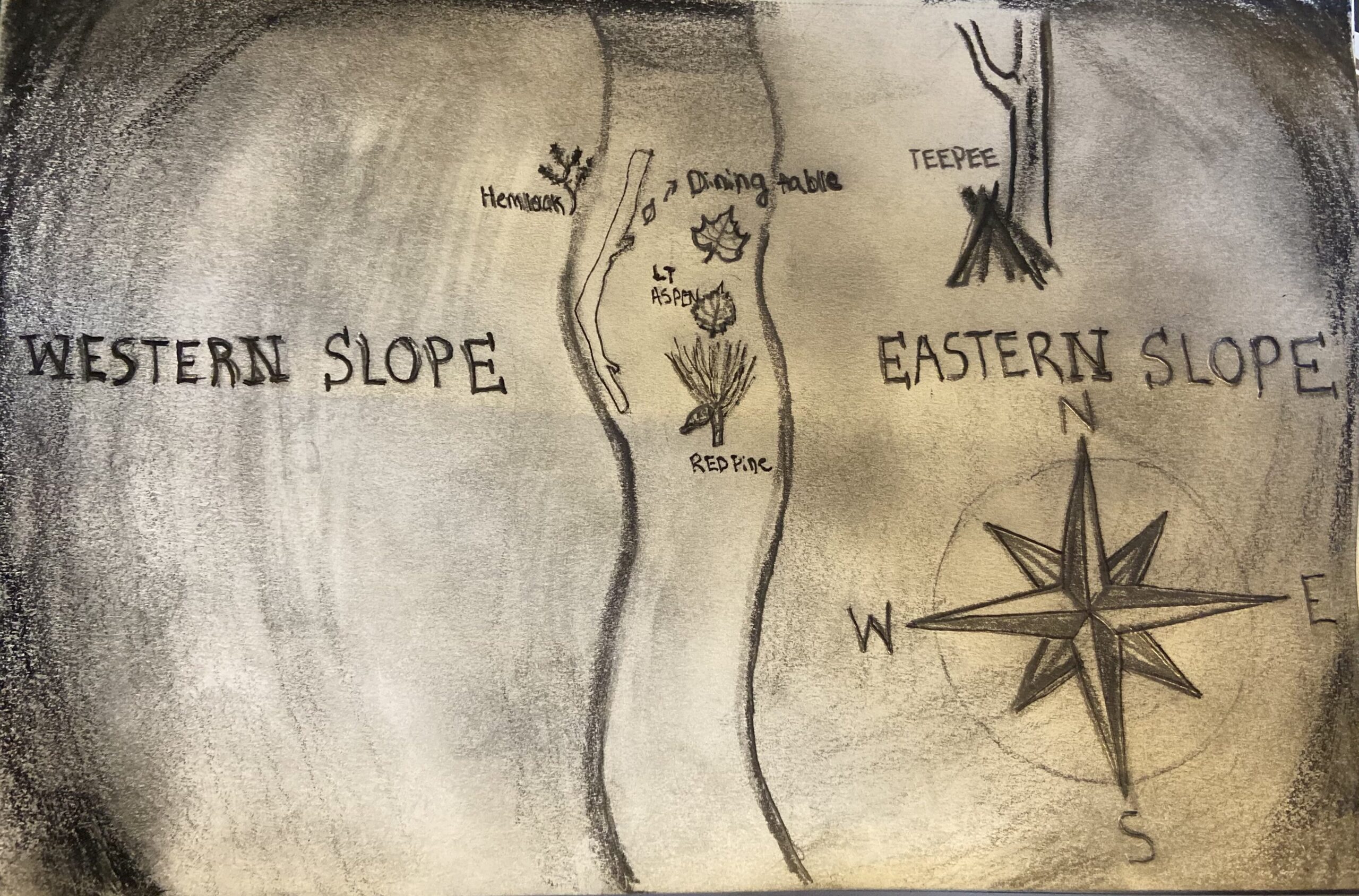 Birds-eye view of the Ridgeline that I did in the field. Key markers show important trees or landmarks.