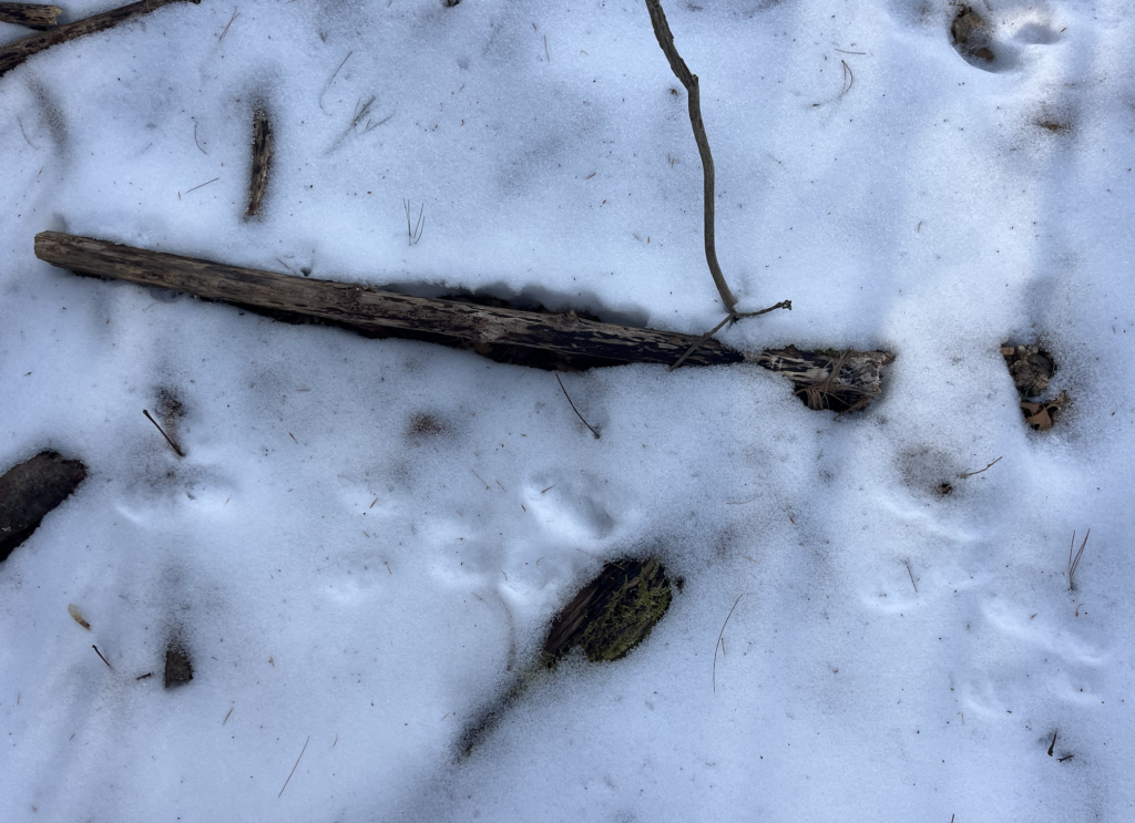 In the past few days most of the snow Burlington has gotten has melted due to warm temperatures and sun, so many existing tracks at my phenology spot might have melted. Plus humans tracks at my area might have covered up animals tracks, but i still noticed some patterns in the snow that could have been smaller mammals.