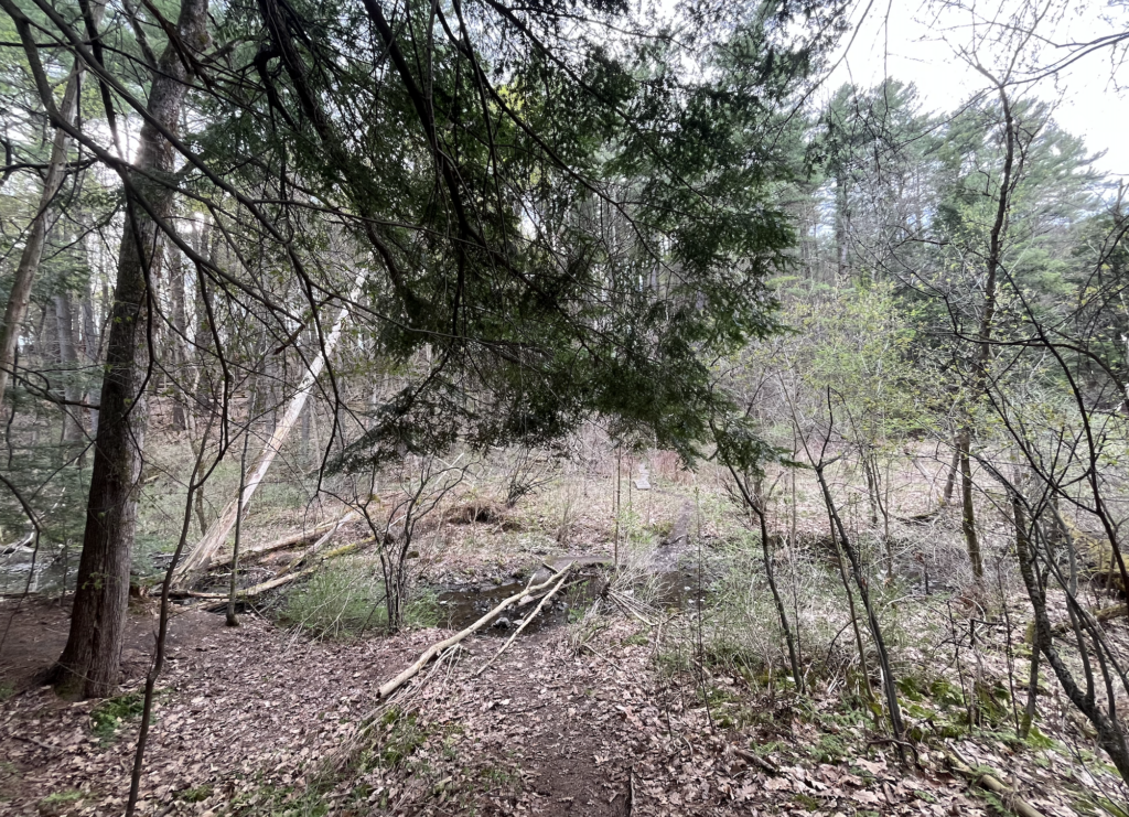 A major landmark of my spot is the stream that runs through Centennial Woods. In the fall and spring, I can hear the stream from 500+ yards away. And the composition and water levels of the stream doesn't change much through out the seasons.