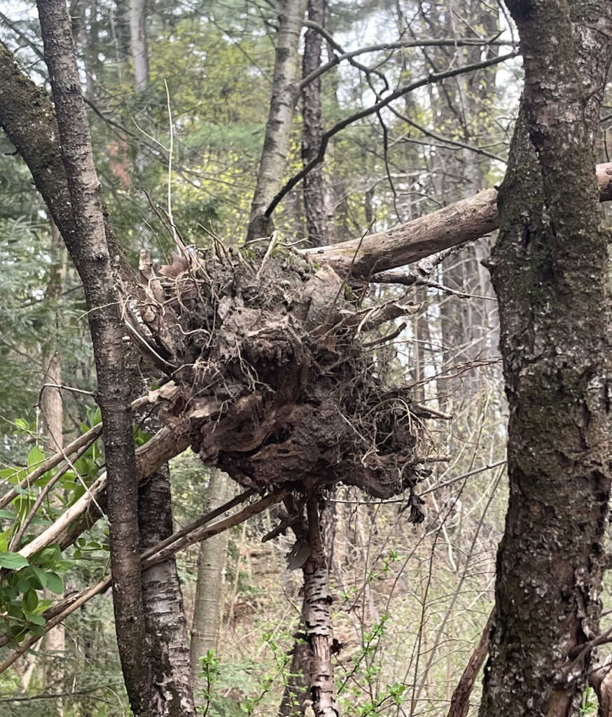 I also noticed that somebody had de-rooted some invasive honeysuckle by the stream and placed it roots up in a nearby tree