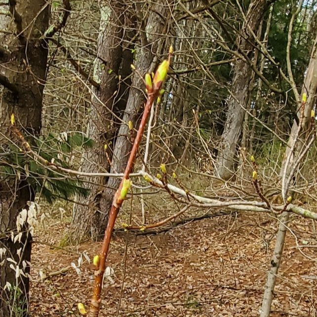 This time that I revisited the tree there was a lot more green showing from the actual leave poking out, you could very easily tell that it would be blooming into actual leaves soon enough. I think that within the next 2 or so weeks that this will be fully bloomed, as long as the weather stays warm and sunny with maybe some rain in the mix as well. On this trip I sadly did not see any birds or larger animals but I did see a grey squirrel along the way on the edge of the woods near the entrance to centennial woods. I also found some trash near the entrance that I picked up and brought back to campus to dispose of correctly so as to not litter.
