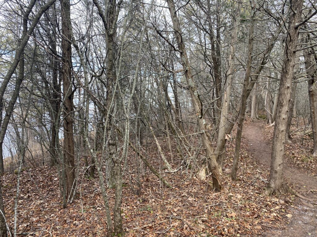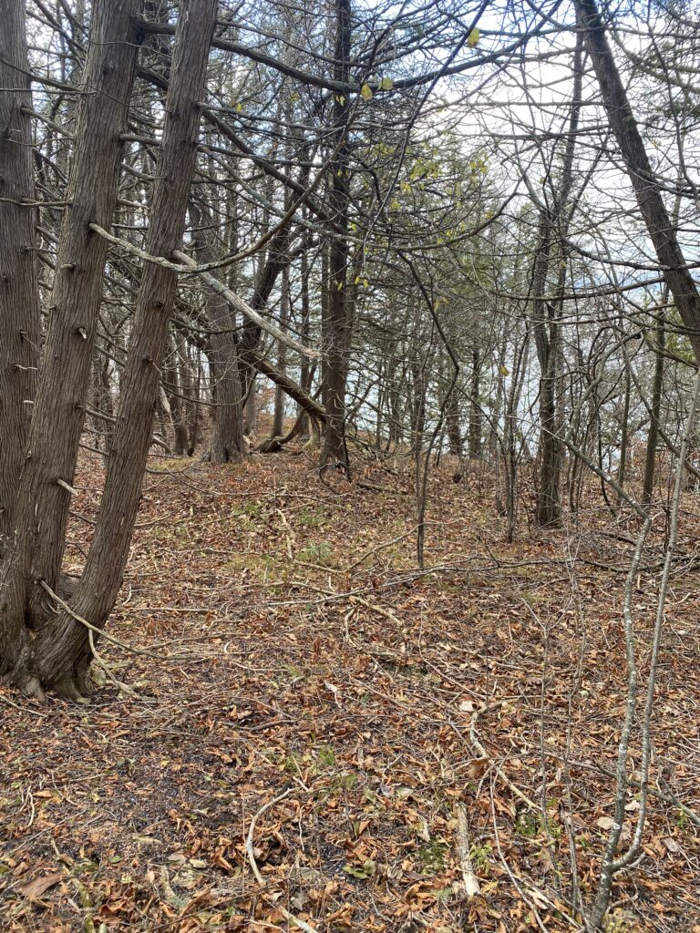 And so I walked to Rock Point this past weekend, wondering what I would find. I walked northwards along the bike path, all the way to the bridge over the campground, before cutting through and reaching the park gates. Naturally, I began wandering aimlessly, gently and slowly drifting towards the cedar-pine forest. I stopped plenty to admire the beautiful westward view of the Adirondacks, and the sun slowly creeping closer to their peaks. When I finally arrived, I was treated with the best view I had seen yet and a forest rich in plant life. As the name would suggest, the most common woody plant species in the forest were pines and cedars. However, the understory was ripe with deciduous plants! Even more interestingly, the woody plants were still mostly green, despite the fact that woody plants outside the limestone bluff forests had lost most of their leaves already.