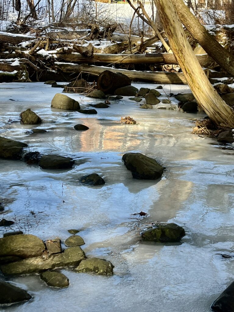 I definitely consider myself a part of my phenology spot because I have spent the whole year getting to know it, through multiple weather events and seasons. Today, I felt especially a part of it because after exploring the phenology, I sat on a rock right in the stream and meditated/thought about what I was grateful for. This helped me be present in my spot and ground myself with the smells, sounds, and feelings of the area. Getting in touch with all of my senses just for 10 minutes enhanced my experience and allowed me to feel like I was a part of this place and adding to it, rather than a mere visitor. Additionally, since this is not a natural area made for human recreation, I feel especially connected to this place because it is a hidden gem under a bridge with minimal direct human intervention. Over the school year, I have gotten to know this place and watched it evolve, and am now familiar with many of the stories and life that thrives here. Spending time wading on the river bank or sliding on the ice that froze over in the winter has allowed me to become part of the stories of this place, rather than an outsider hearing about them. This whole project has provided me the space and time to reflect and appreciate the small intricacies of nature, and I now feel a sense of responsibility to protect my phenology spot as it holds a special place in my heart.