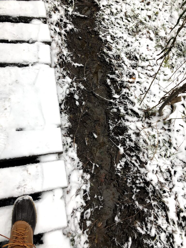 There was also a set of footsteps in the middle of my phenology site, which is usually dominated by plants and appears untouched by humans, but now with all the snow someone felt invited to walk through the center of this small flood ecosystem.