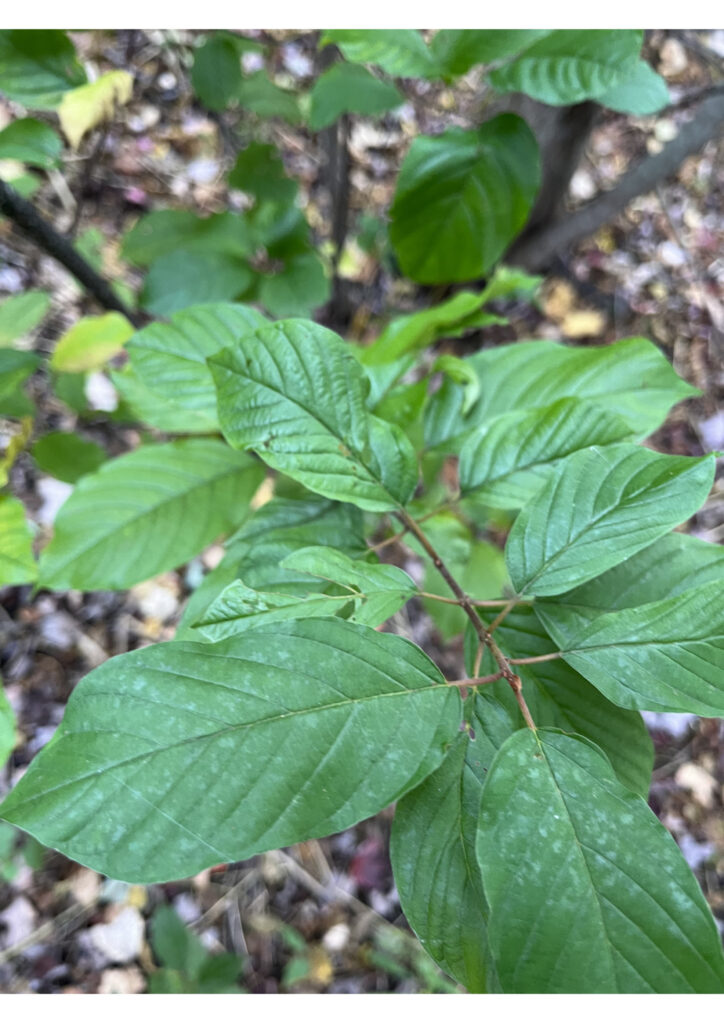 Both Glossy and Common Buckthorn can be found growing under the cover of the Red Maples.