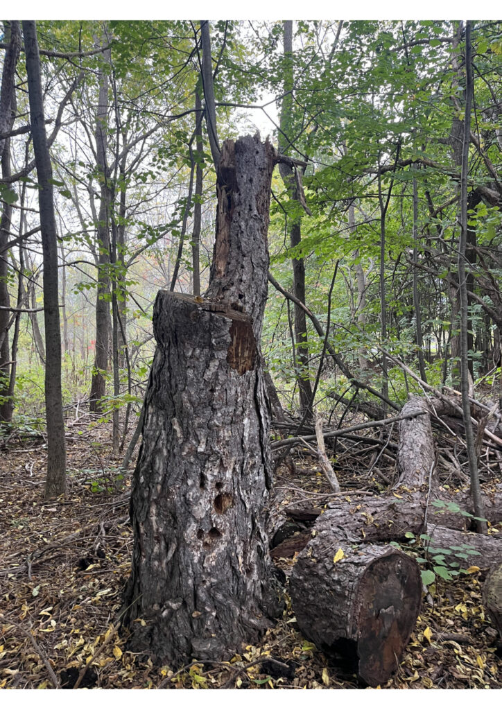 Most of the overstory is composed of Basswood trees of varying age and size, and there is a patch of exclusively young basswoods off of the path near the gravel road to the Research Complex