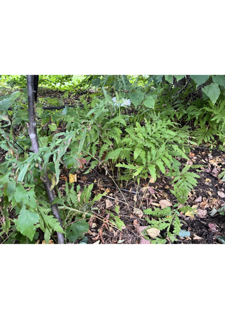 Various other shrubs and vines grow, yet to be identified except for a patch of Sensitive Fern across the path from the marsh