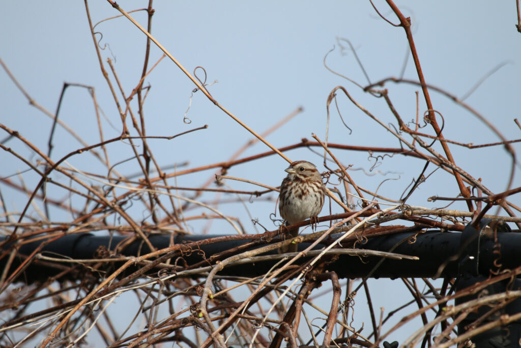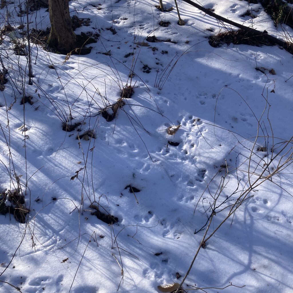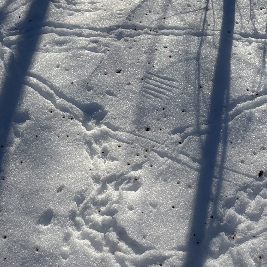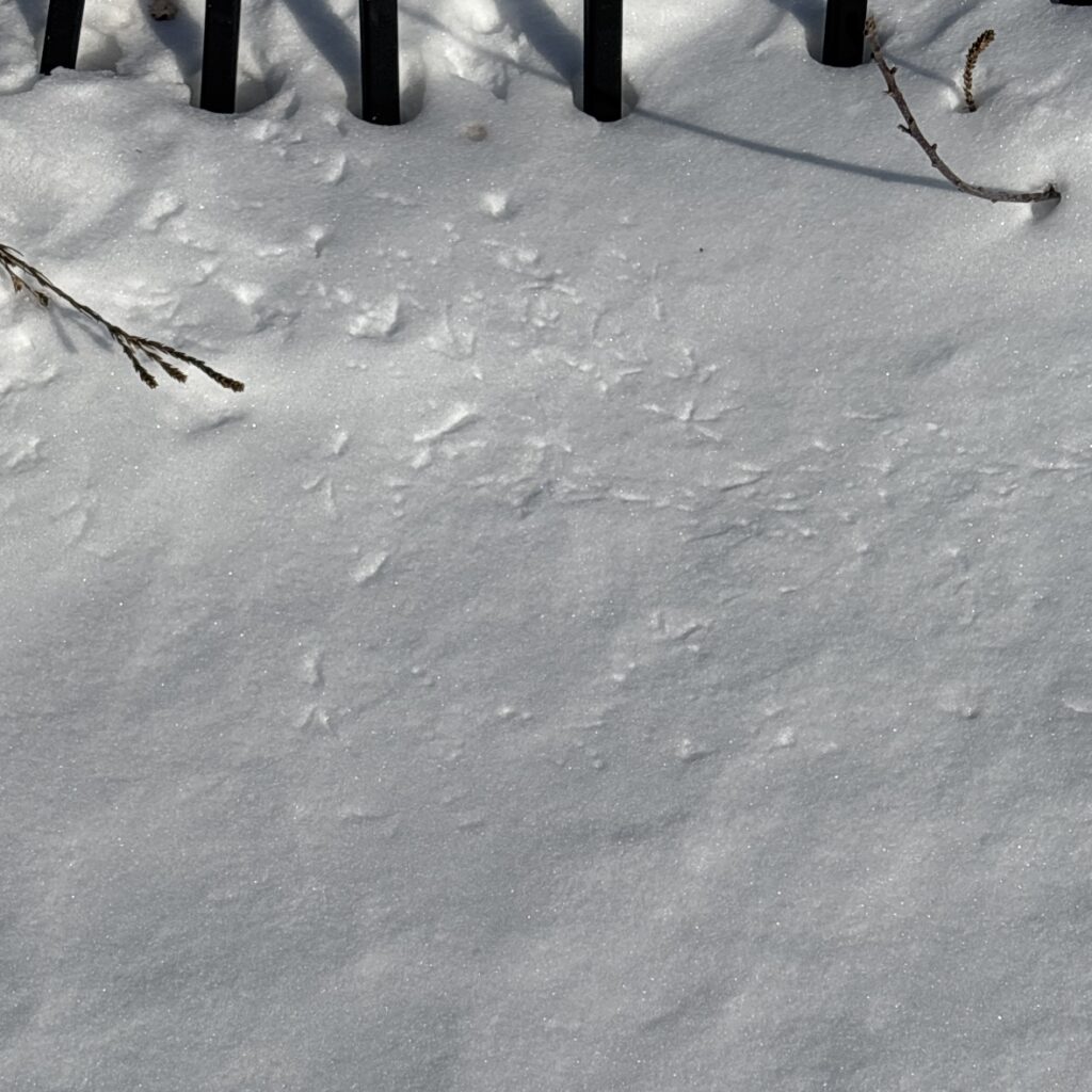 To better explore the urban wildlife of Burlington, I went down to the waterfront with a few friends. We had a few bird sightings, and encountered various signs of live. I included some of the more notable tracks below, as well as a winter wasp/yellow jacket/hornet nest. I identified the first photo as wing and foot prints of an American Robin. This was my ID because of the distinctive digging patterns, and the size of the wing prints. Of the limited birds that are here at this time of year, a robin was the best fit for these signs. This was also below a sumac plant, which is something I know robins to eat in the winter. I don’t actually have a specific species ID for the nest I saw, but I suspect that it may be a yellow jacket nest. I am hoping to get some feedback on iNaturalist in the next few days for this ID. Finally, I included a photo of some bird tracks below. I attribute these to house sparrows, due to the size, and the location. The plants in the area, and the ground foraging seems to fit best with house sparrows, their was also some near by vegetation that seemed likely as a food source for for house sparrows. Their were a variety of other identifications I made, but I chose to just include only the most notable ones. Overall, I really enjoyed the experience, and searching for signs of life in the city. I think iNaturalist was a very good tool in this case, and continues to be user friendly.