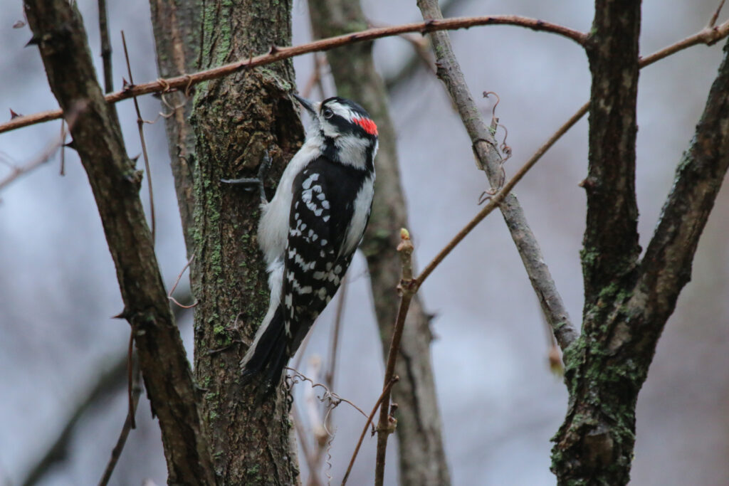 As I settle down in the middle of my site, raindrops begin to fall from the sky. I close my eyes and listen to the rain pattering onto already damp leaves as the creek burbles and a distant downy woodpecker calls. 15 minutes later my nose is freezing and my hair slightly damp, but the light drizzle has abated and the clouds have begun to brighten above. In these few minutes, I was able to put aside my unrelated thoughts and enjoy the moment. I observed the goings-ons of the areas; squirrels foraging for any remaining nuts and seeds, chickadees and kinglets flitting from branch to branch, and leaves drifting down from above. It is very refreshing to engage in my chosen site and get to know it just a little bit better.