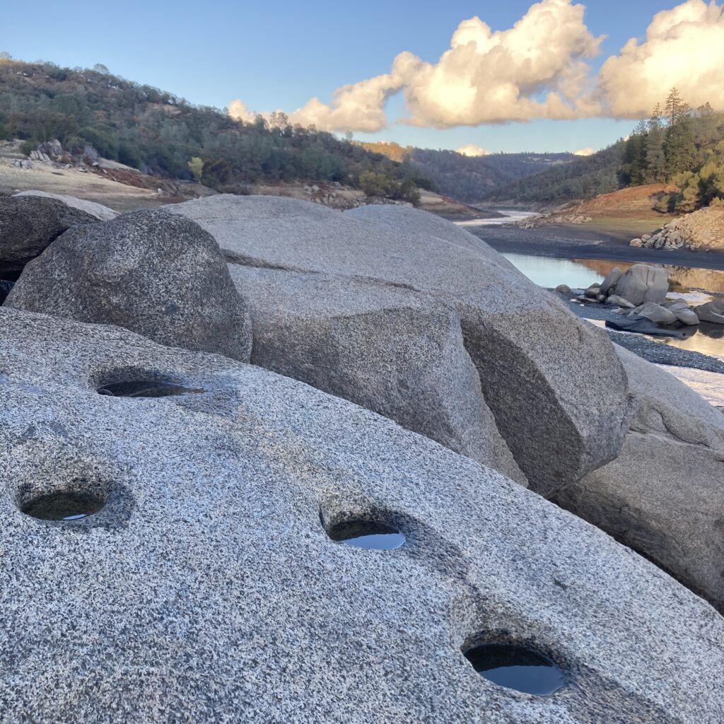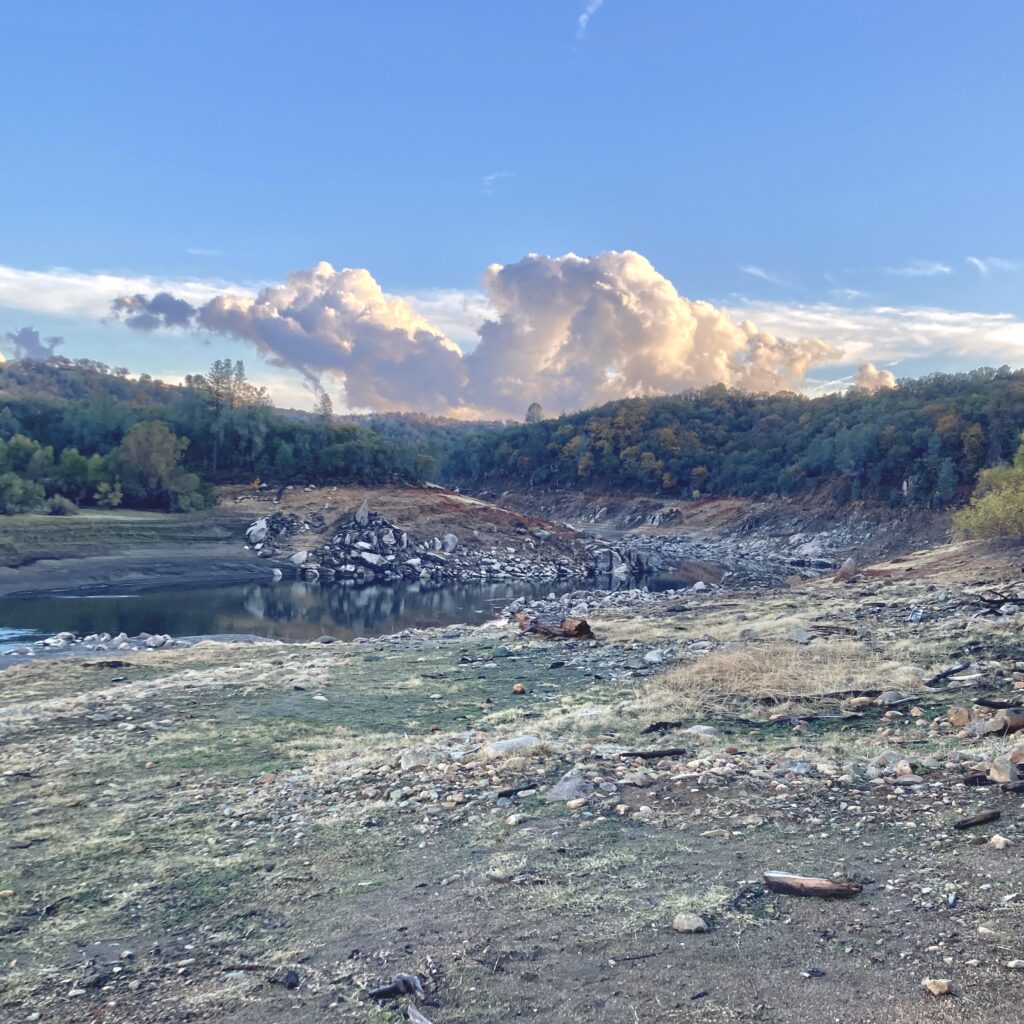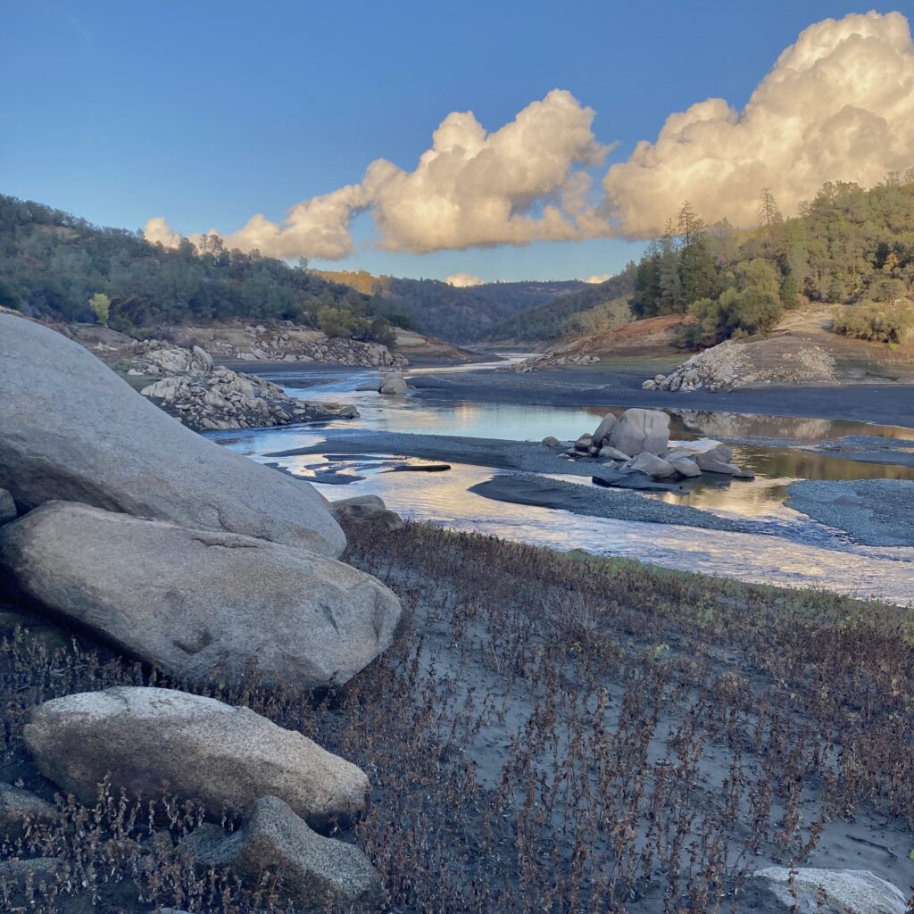 The biggest natural process present in this area is the the river itself. As the river carved its way through the landscape it formed many of the greater patterns we see today, and it continues to influence the location of sandbars and rocky beaches. The other main influence on this landscape, which is not a natural one, is the Folsom Dam. The dam means that water levels change drastically throughout the year as the water in Folsom Lake is released or conserved. These constant changes impact the structure of the river bank, and limits the ability of ecosystems to develop along temporary shores. While the river looks very river like now, the water level will be much higher and appear as more of an extension to Folsom Lake at other times of year. This explains why the map below shows my chosen phenology spot as underwater, as the map models a higher water level in the area.
