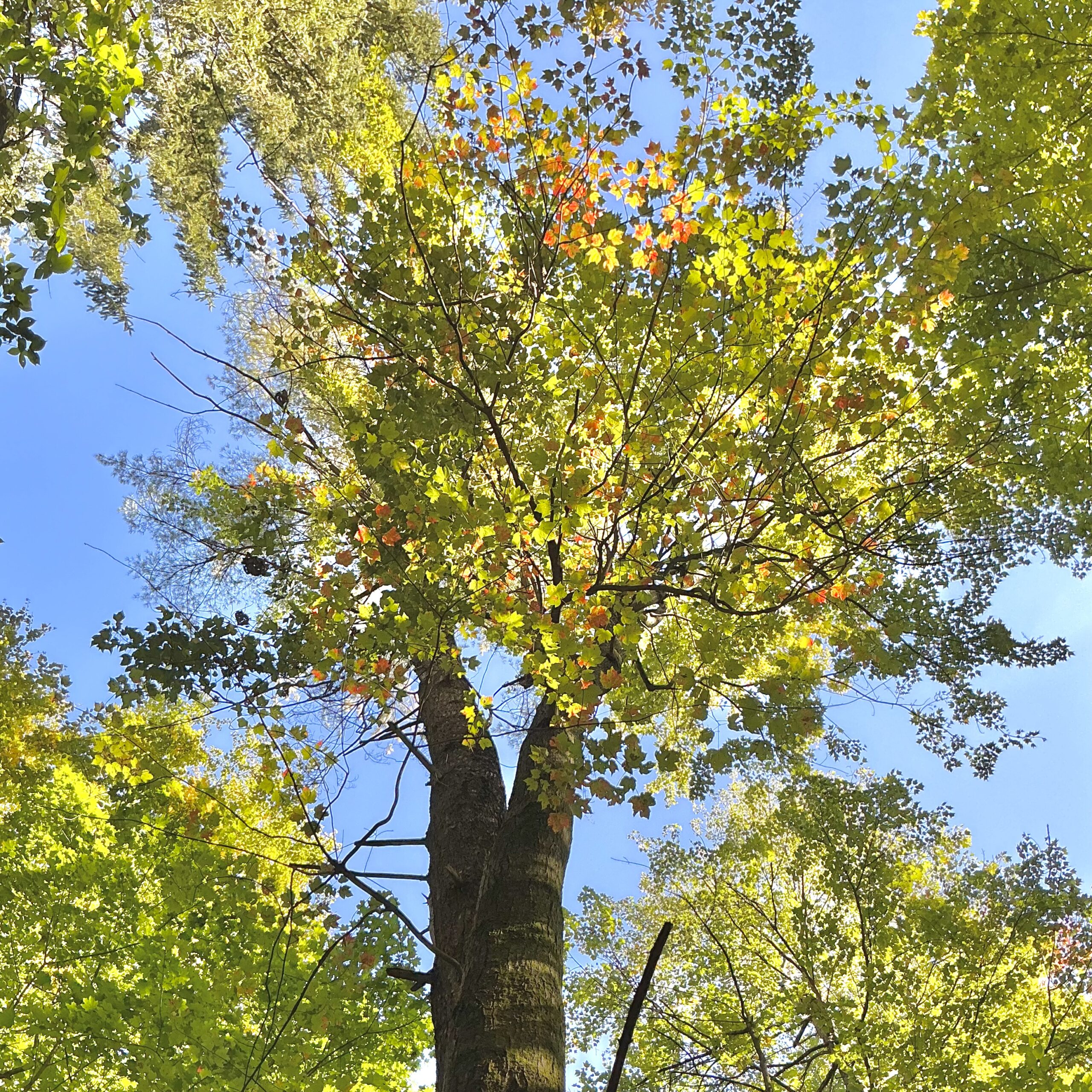 As I walked to my location early this morning, I watched Canada geese fly overhead and Eastern grey squirrels cache acorns for the winter. With leaves changing colors, and temperatures dropping, fall is in full swing and the animals know it. Upon arriving at my site I first stopped to sit and observe the subtle goings ons in the area. From the blue jays calls piercing the air, to water striders hovering on the still pools of the stream, the forest is alive. I then begin to categorize the vegetation in the area. The stream bed remains mostly clear of trees and other vegetation, housing primarily fallen logs and mossy rocks. As I move up the hills on either side, their are a variety of tree species, and undergrowth. The majority of the trees seemed to be Norway maples and sweet birch. Mixed in are red maples, white ash, yellow birch, American elms, American beech, an Eastern Hemlock, and a few large white spruce and Eastern white pines. Surrounding the large tree trunks is a covering of saplings, ferns, buckthorn, Eastern leatherwood, purple-flowered raspberries, and other leafy undergrowth.