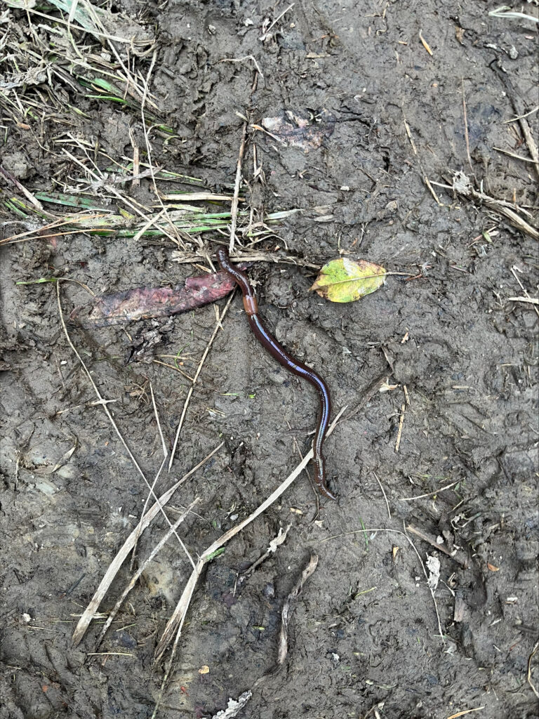 Invasive earthworm, likely a “Red Wriggler”, 11/17/2023