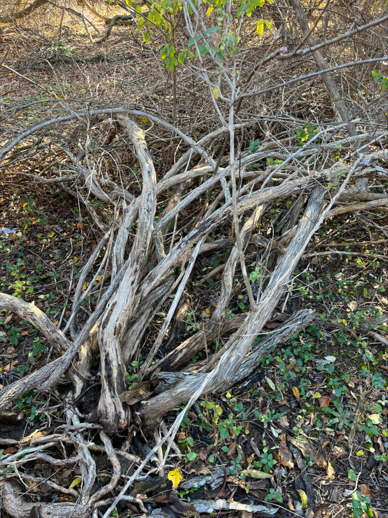 Black cherry tree entirely choked out by Oriental bittersweet (11/23/2023)