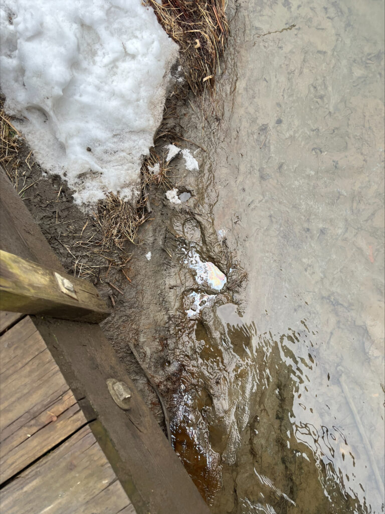 During the Urban Naturals Stewardship lab, we conveniently walked through my phenology spot. Upon arrival, I noticed the growing size of the oil deposit sitting along the streambank.