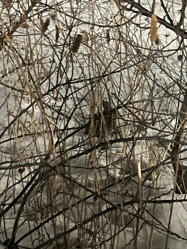 The most prominent phenological change to my spot is the layer of slushy snow on the ground, covering a significant amount of the dead flora. There were little to no direct signs of wildlife directly at my phenology spot, and the most prominent animal prints were from humans walking their dogs. I could no longer audibly hear insects chirping, and less birds could be heard in the surrounding area.
